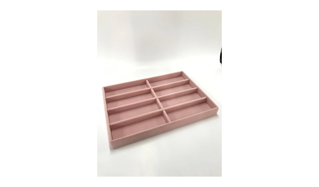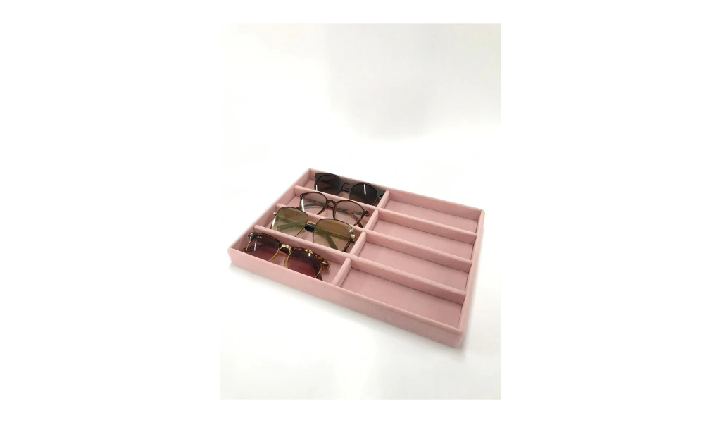 New York Model Süet Kumaş Pembe Renk 34/24 cm Bölmeli Çekmece Içi Gözlük Standı