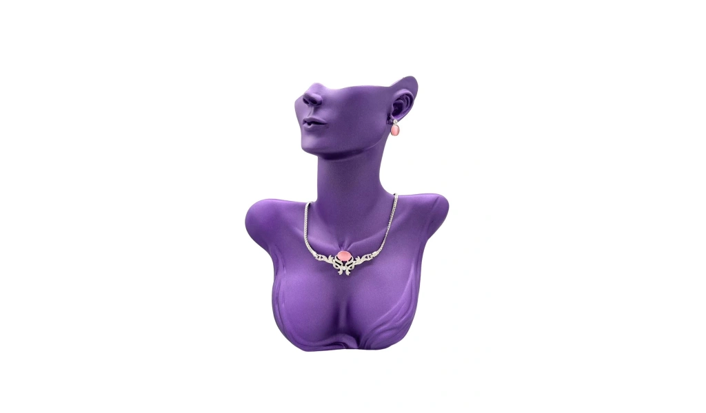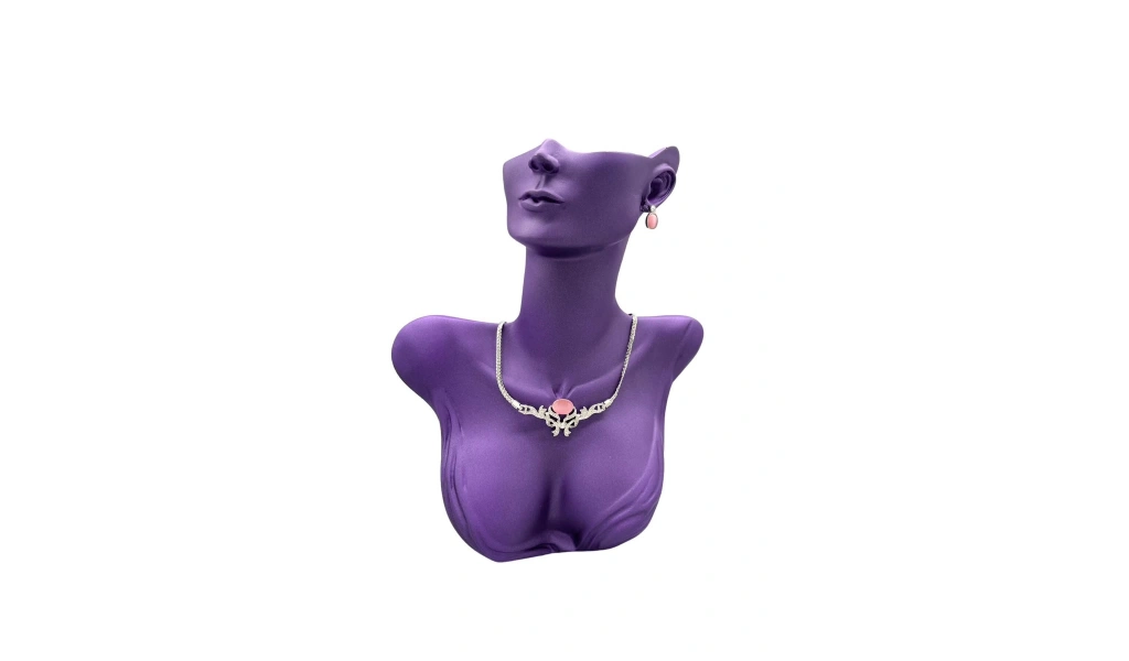 Yerli üretim polyester malzeme kullanılarak üretilmiş, dayanıklı ve uzun ömürlü bir yapıya sahiptir; Mor renk seçeneğiyle dikkat çeken bu takı sergileme mankeni, takılarınızı ön plana çıkarır; 33 cm yüksekliği ve 26 cm genişliği ile çeşitli takı türleri için ideal boyutlarda tasarlanmıştır; Platinyum kaplama özelliği sayesinde parlak ve şık bir görünüm sunar, takılarınızın daha göz alıcı olmasını sağlar;
