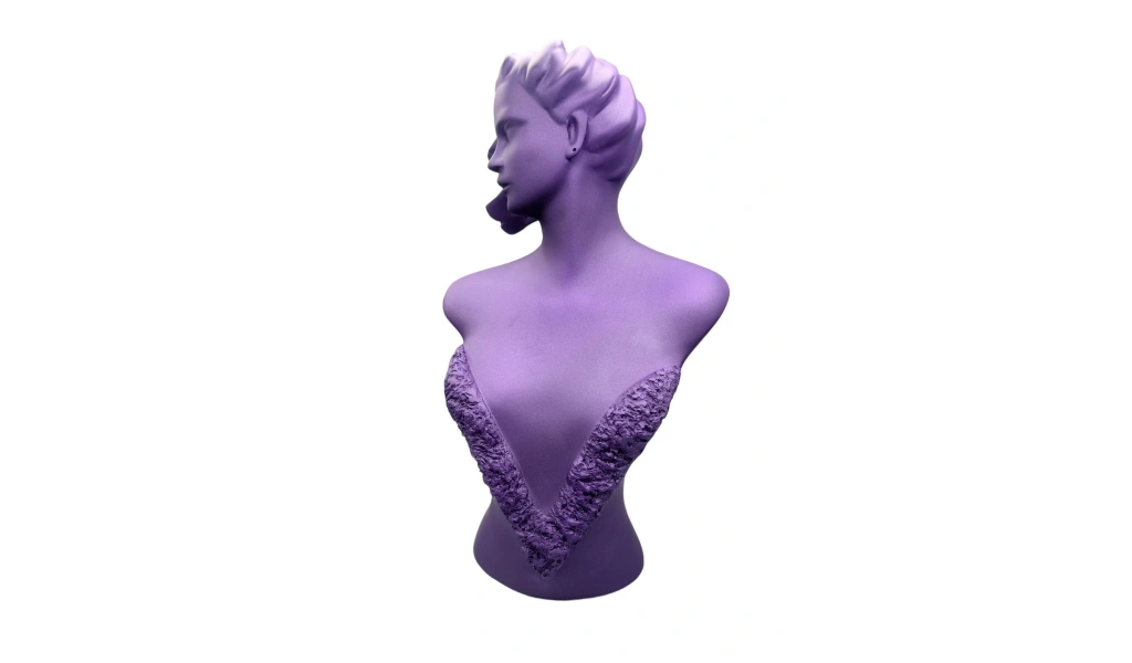 Ürünün Özellikleri: Malzeme: Polyester boyalı Boyalı Boyutları : Boy: 51 cm En: 28 cm Derinlik : 10 cm Renk: Mor Açıklama: 1 adet kolye ve 1 adet küpe kombin takılarınızı sergileme ve fotoğraf çekim mankenidir.