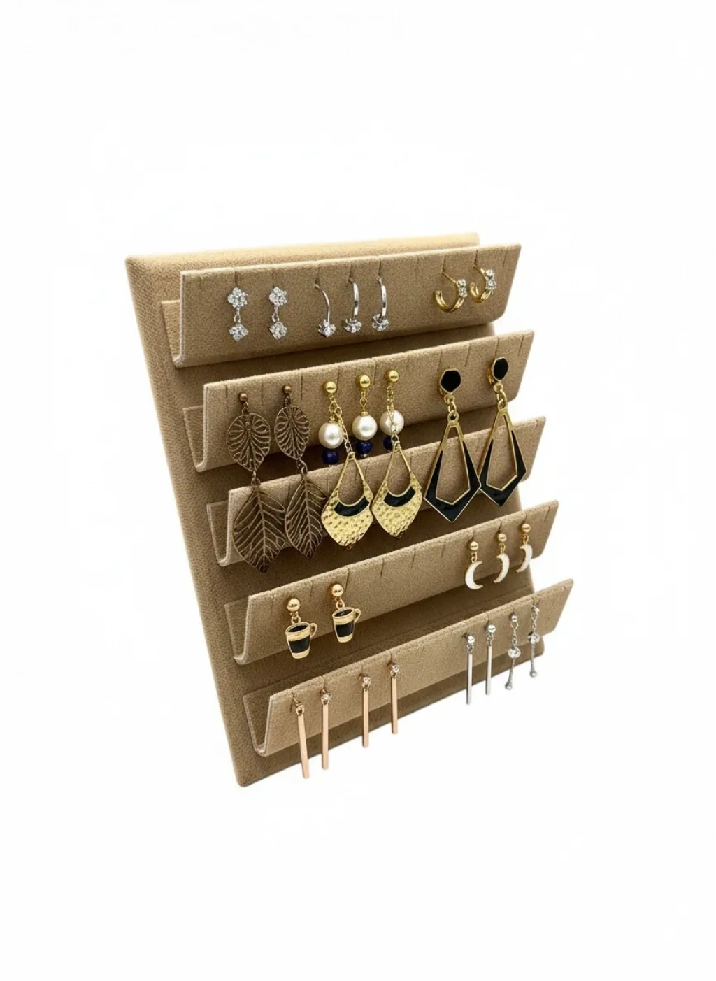 Süet Kumaş 20/16 Cm Sütlü Kahve Renk Ayaklı Küpe Standı