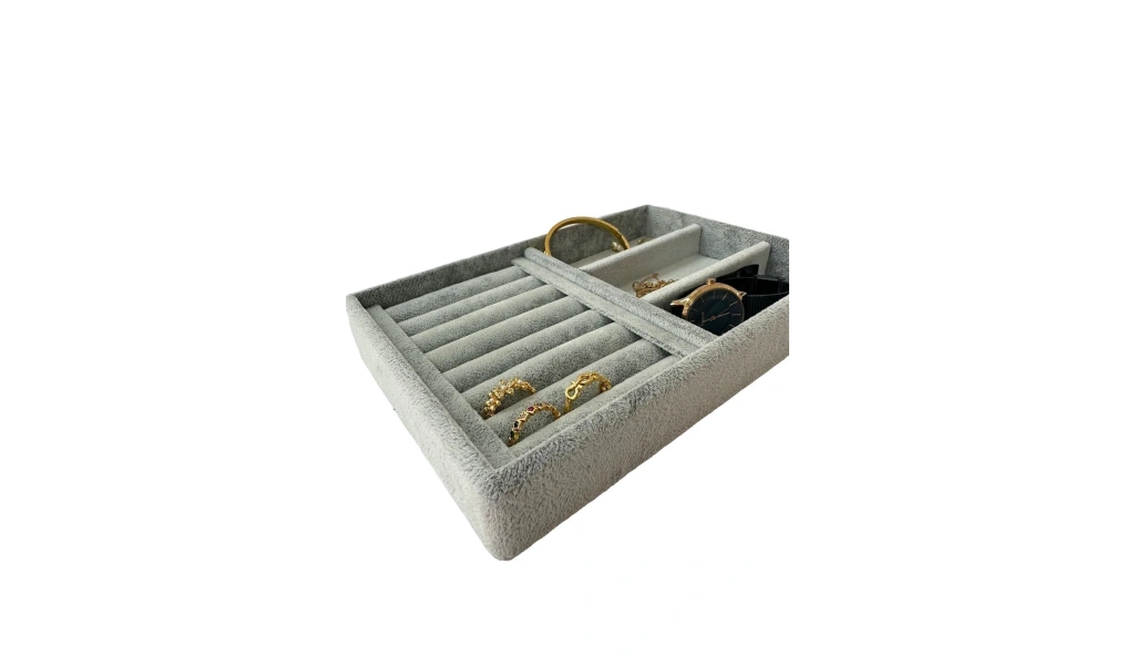 Venedik Model Süet Kumaş Gri Renk 22 Cm / 14 Cm Çekmece Içi Takı Standı