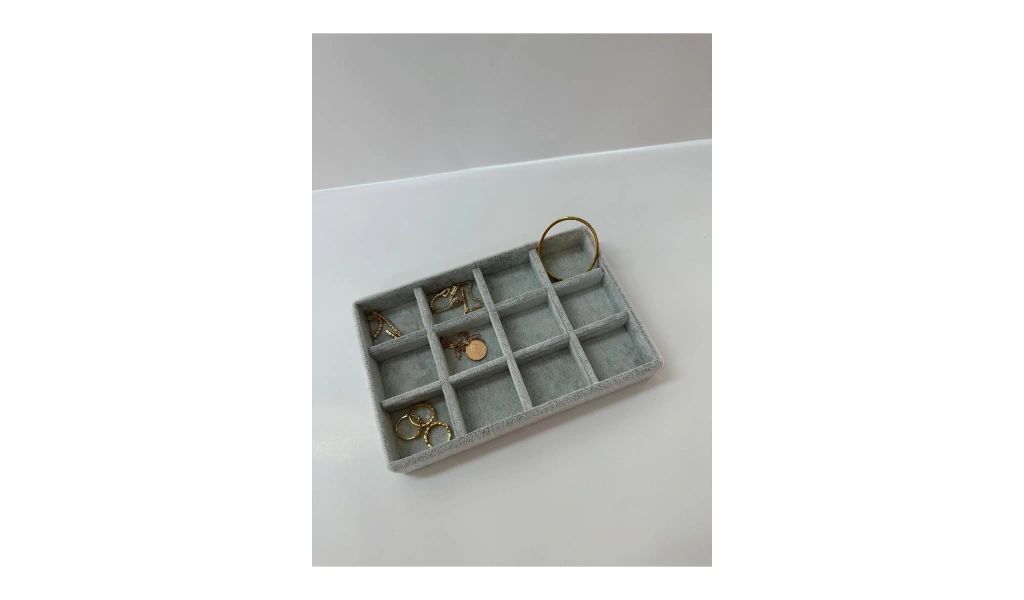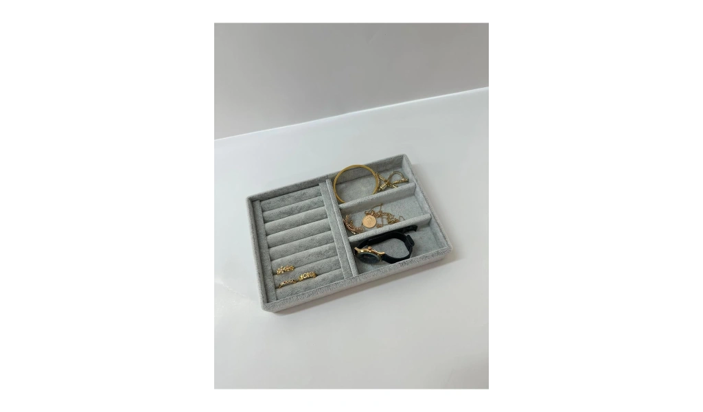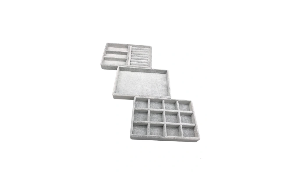 Peru Model Süet Kumaş Gri Renk 22/14 cm 3 Lü Takım Çekmeçe Içi Takı Standı