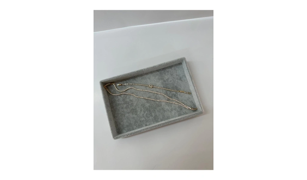 Ürünün Özellikleri: ; Malzeme: Mdf üzerine süet kaplama ; Boyutları ; Boy: 14 cm En: 22 cm ; Yükseklik : 3 cm ; Renk : Gri ; Kullanım Alanı : Takı sergileme ve fotoğraf çekimi için idealdir.