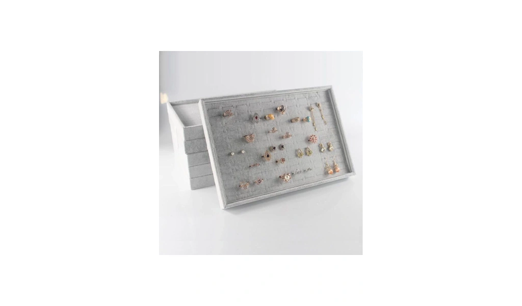 Ürünün Özellikleri : Malzemesi mdf üzerine süet kaplama ; Boyutları : Boy: 34 cm En: 24 cm Yükseklik : 3 cm ; Renk: Gri ; Kullanım Şekli : 140 Adet yüzük küpe sergilenebilir.