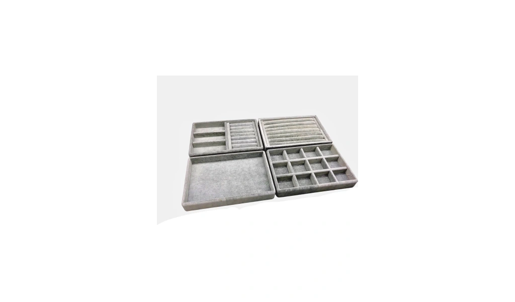 Kiev Model Süet Kumaş Gri Renk 22/14 cm 4 lü Takım Çekmeçe İçi Takı Standı