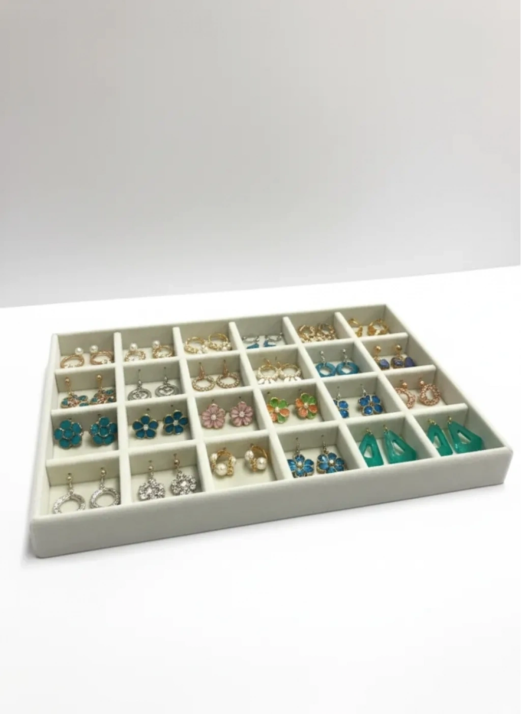 Varşova Model Süet Kumaş Krem Renk 34 Cm / 24 Cm 24 Bölmeli Takı Standı