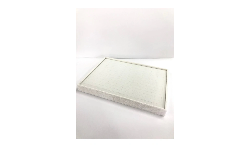 Ürünün Özellikleri : Malzemesi mdf üzerine süet kaplama ; Boyutları : Boy: 34 cm En: 24 cm Yükseklik : 3 cm ; Renk: Krem ; Kullanım Şekli : 140 Adet yüzük küpe sergilenebilir.