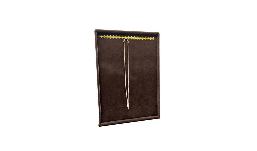 Ürünün Özellikleri: Malzeme: Mdf üzerine süet kaplama ; Boyutları : Boy: 34 cm En: 24 cm ; Renk: Kahve ; Açıklama : 31 Adet takı sergilenebilir ;