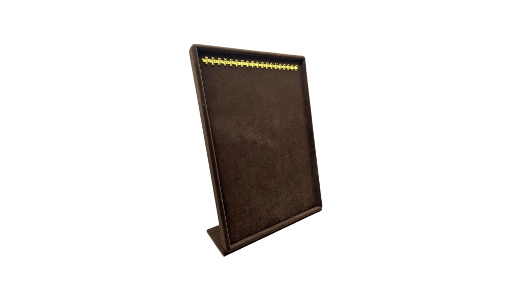 Süet Kumaş Çerceveli Kahve Renk 34/24 Cm Tırnaklı Ayaklı Tesbih-Kolye-Zincir Takı Standi