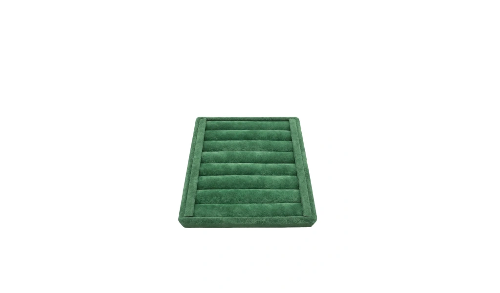 Ürünün Özellikleri : Malzemesi mdf üzerine süet kaplama ; Boyutları : Boy: 15 cm En: 15 cm Yükseklik : 2 cm ; Renk: Yeşil ; Kullanım Şekli : 50 Adet yüzük sergilenebilir. ;