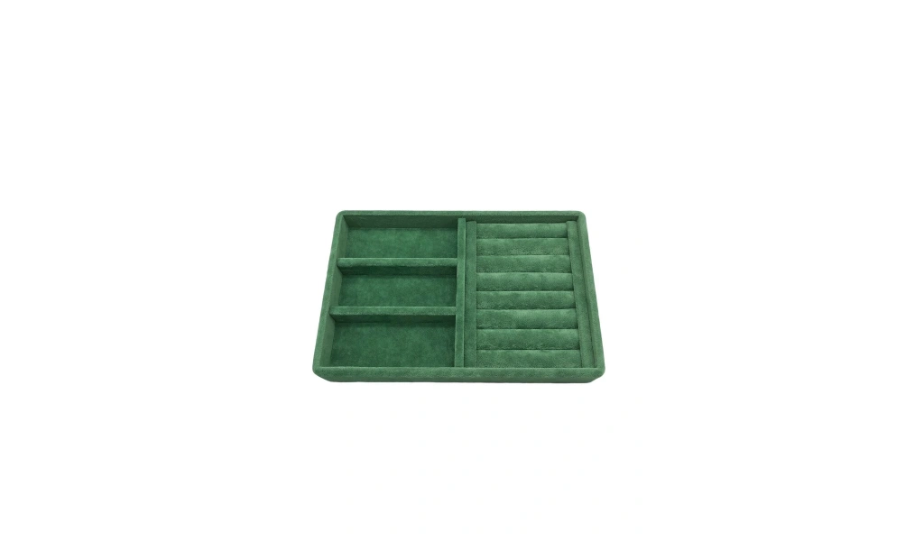 Malzemesi : Mdf üzeri süet kumaş kaplamadır. Renk : Yeşil ; Ürün Boyutları 22 cm - 14 cm Yükseklik : 3 cm ; Alt kısmı kuşe kağıt ile kaplanmıştır Takılarınızı Ayrı Ayrı Gözlere Koyarak Daha Rahat Muhafaza Edebilirsiniz ;