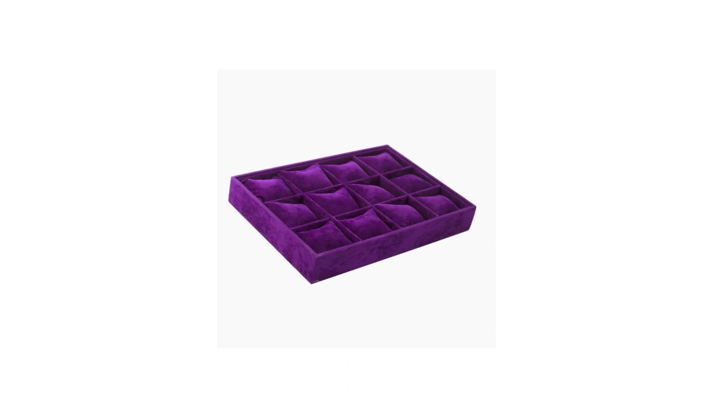 Tokyo Model Süet Kumaş Mor Renk 34/24 cm 12 Yastıklı Çekmece içi takı kutusu