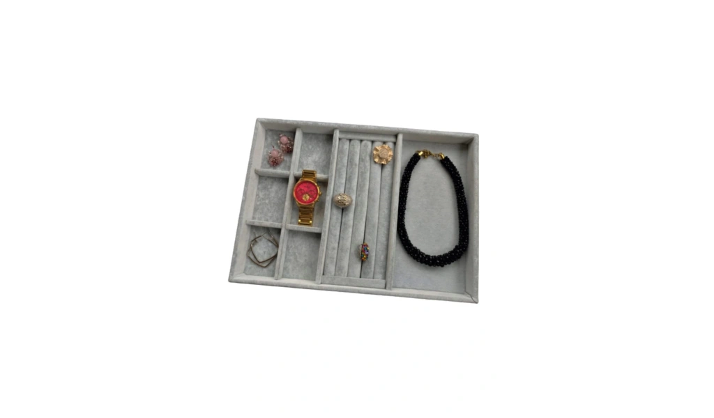 Mücevher, takı ve aksesuarlarınız için ideal saklama çözümü sunar; her türlü eşyanızı düzenli ve şık bir şekilde sergilemenize olanak tanır; Yüksek kaliteli kumaş materyali sayesinde dayanıklılık ve uzun ömürlü kullanım vaat eder; Tek parça halinde gelen bu ürün, montaj gerektirmeyen pratik bir kullanım sağlar;